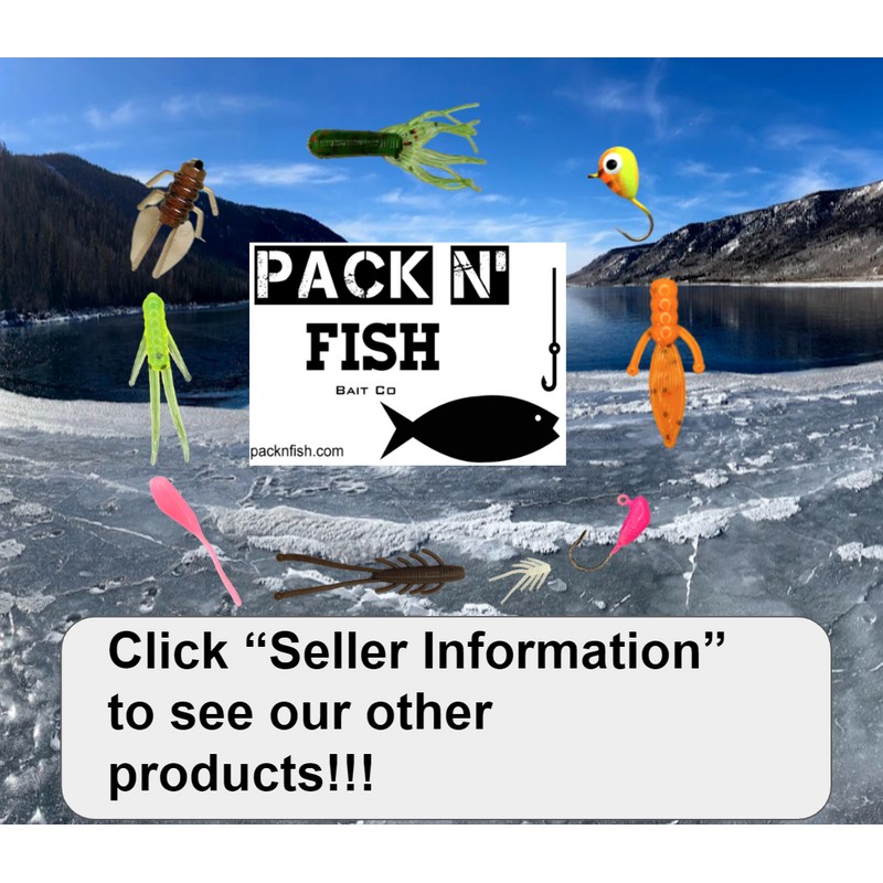 6 packs with 15 jigs per pack. (90 jigs total) These jigs are handcrafted by my two boys and I. We do really well ice fishing for trout and perch with these jigs, but they will also work great in any jigging situation as they have really good movement. To see our full assortment of jigs go to packnfish.com Please don't hesitate to contact us with questions! Thank You! |