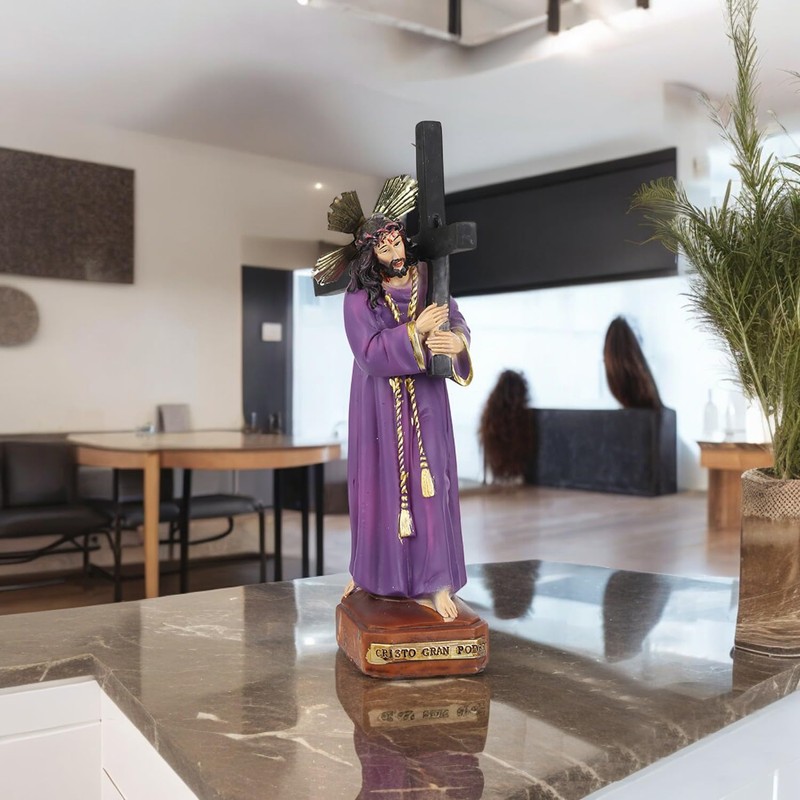 - Design & Color The Jesus figurine comes with the cross and a purple cape, colors often associated with passion and penance in the Christian tradition.
