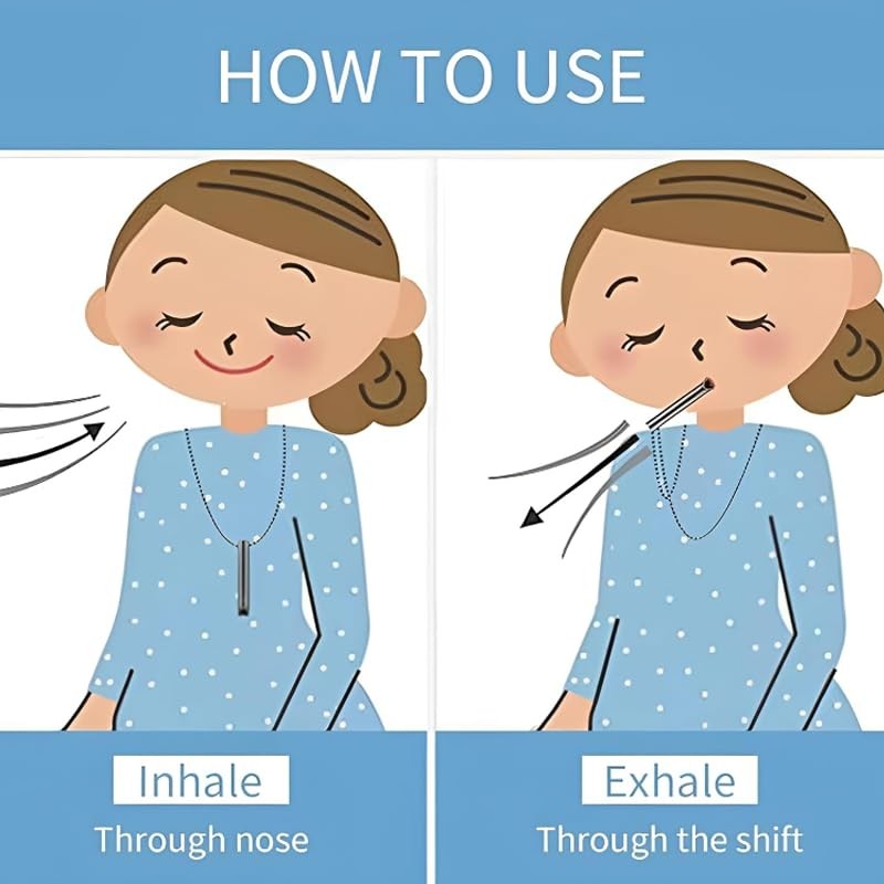 - Easy to wear: Wearing our breathing device constantly reminds you to breathe deeper, fuller and more consciously all day long, naturally relieving anxiety and stress. Find inner peace and complete relaxation with this mobile meditation tool. The anxiety necklace looks great on both men and women and can be worn discreetly under a shirt or as stylish jewellery.