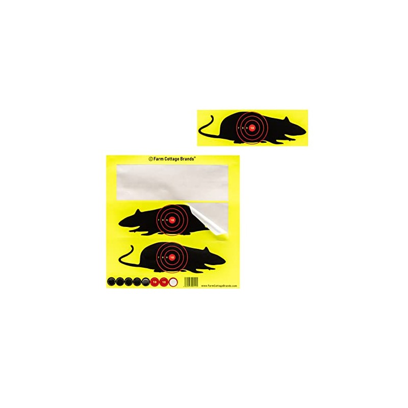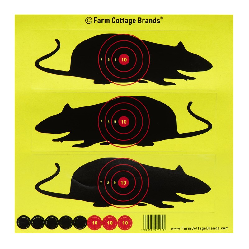 • Stick the rats on cardboard boxes where you usually see them and practise your shooting at different ranges. Each pack contains 10 sheets each containing 3 rat targets, plus pasters so you paste up and use again. Each rat peels off separately