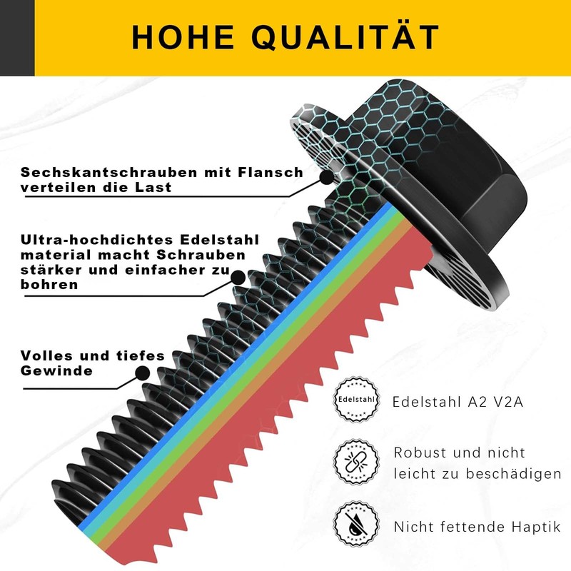 - High-quality material: our serrated flange hex screws are made of A2V2 stainless steel so high stability under tensile or pressure loads, and smooth surface without burrs.