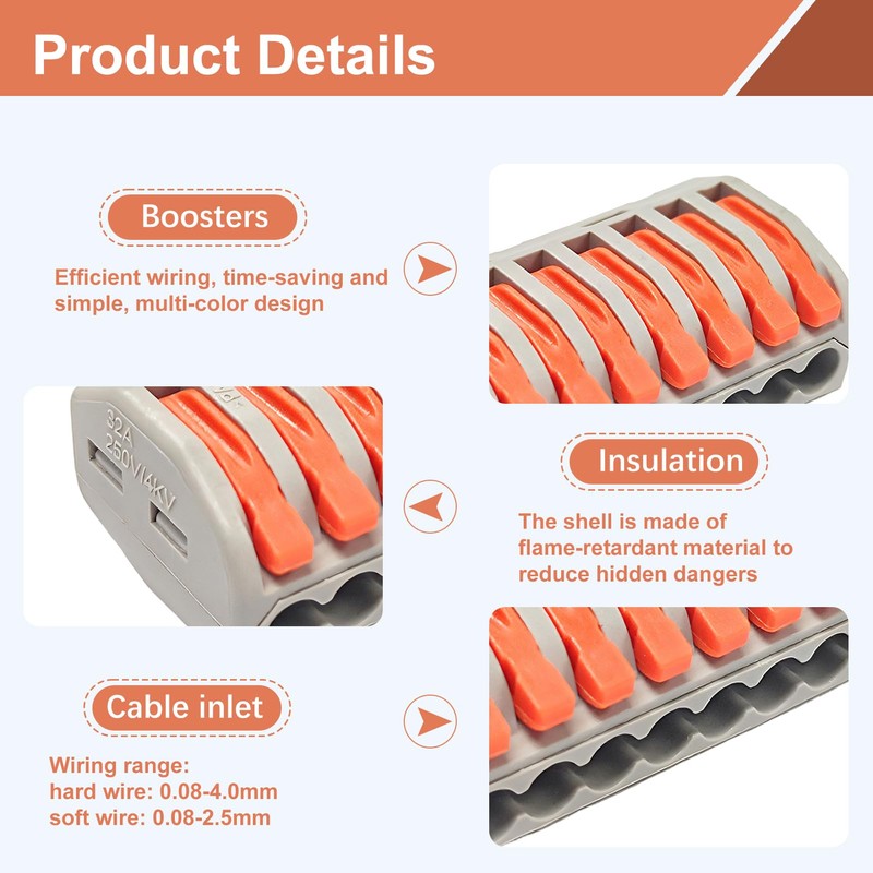 - Pluggable design for efficient installation: these 8 port cable connectors allow for tool-free cable connections, ideal for quick repairs and efficient electrical installations