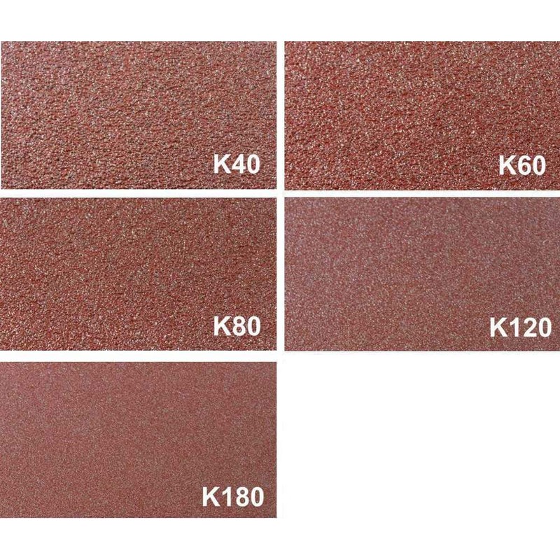 - Grits: 2 x grain 40 / grain 60 / grain 80 / grain 120 / grain 180 - material: corundum