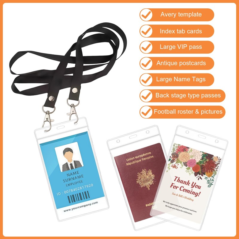 2. The plastic card holder with lanyard has a sealed, transparent, waterproof design that allows clear visibility of text and images on the card while effectively protecting the badge or card.