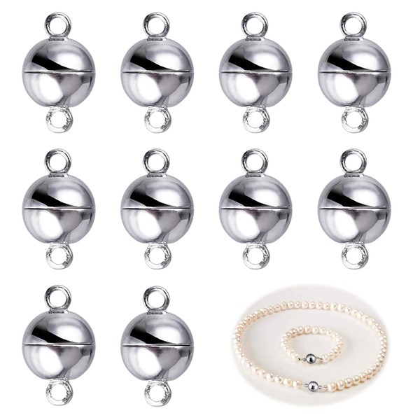 Pack of 10 Jewellery Magnetic Clasps, Silver Jewellery Clasp, Bracelet Clasps, 8 mm Round Magnetic Clasps, Magnetic Chain Clasp for Chains, Bracelets, Necklaces Making