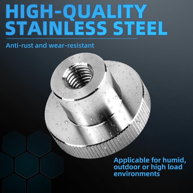 - High-quality stainless steel, rust-proof and durable: forged with high-strength stainless steel, with excellent rust-proof, corrosion-resistant and abrasion-resistant performance, suitable for wet, outdoor or high-load environment, long-term use is still as solid as new, and the service life far exceeds that of ordinary carbon steel nuts