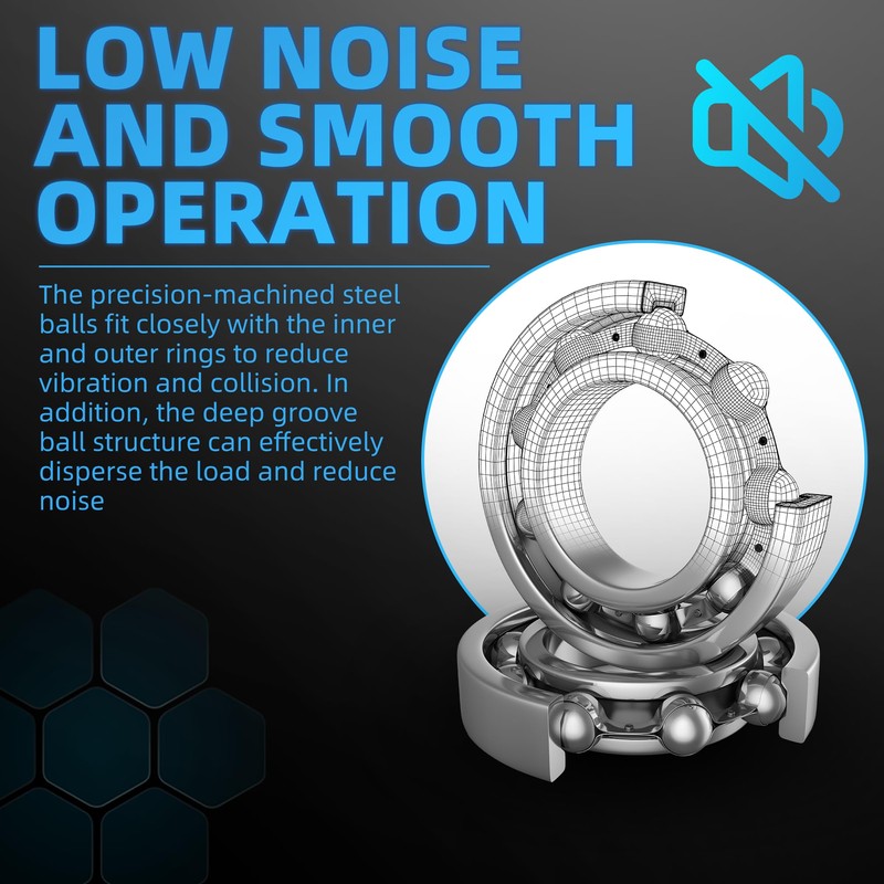 - Quiet operation, silent experience: the precision-machined steel balls fit closely to the inner and outer rings to reduce vibration and collisions; The deep groove ball structure distributes the load and the operating noise is below 40 decibels, which is especially suitable for noise-sensitive devices.