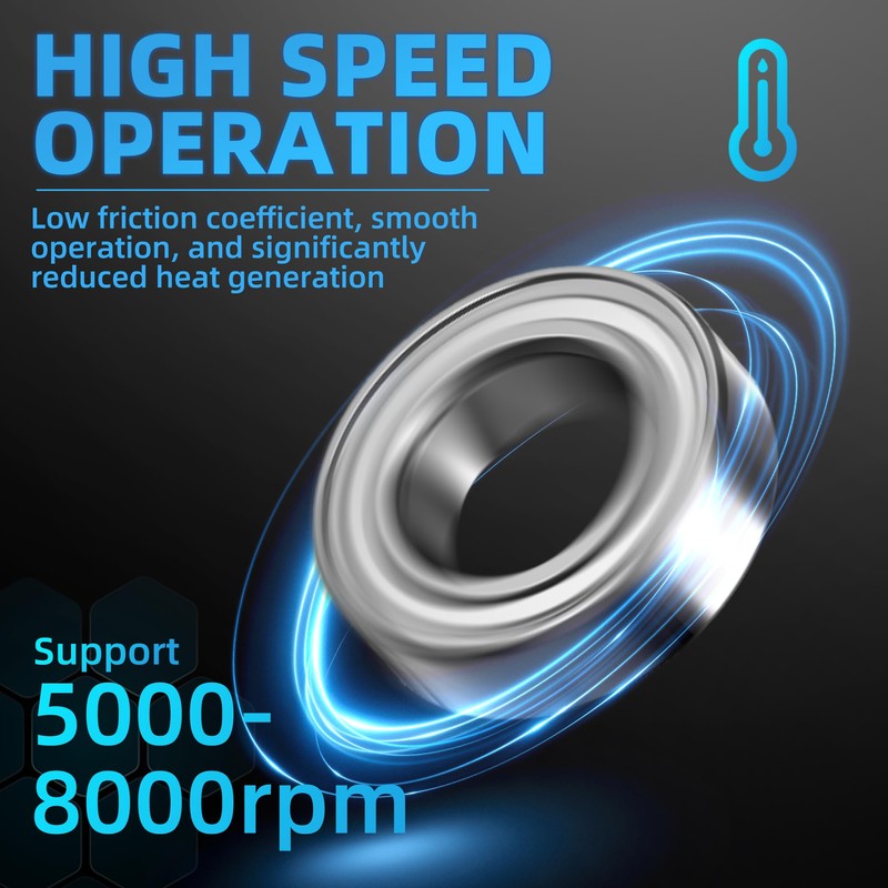- High speed operation and efficient heat dissipation: supports high-speed operation with 5000-8000 RPM, low coefficient of friction, smooth operation, greatly reduces heat generation, reduces power loss, and is suitable for high speed scenarios.