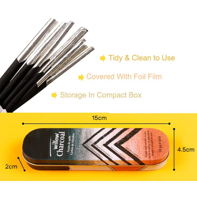 ☑ Includes 10 charcoal sticks, well packaged, 4 different charcoal sticks.
