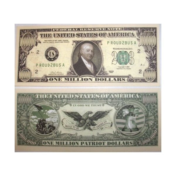 - Pack of 10 - Patriot Million Dollar Bills