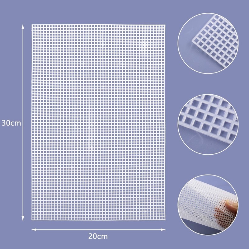 - Widely Use:The plastic canvas is a perfect accessory for various crafts, can be widely used for a variety of crafts such as handbag holders, bookmarks, wall hangings, coasters, tissue boxes, etc. Also suitable for various crafts such as cross stitch, embroidery, crafts etc.