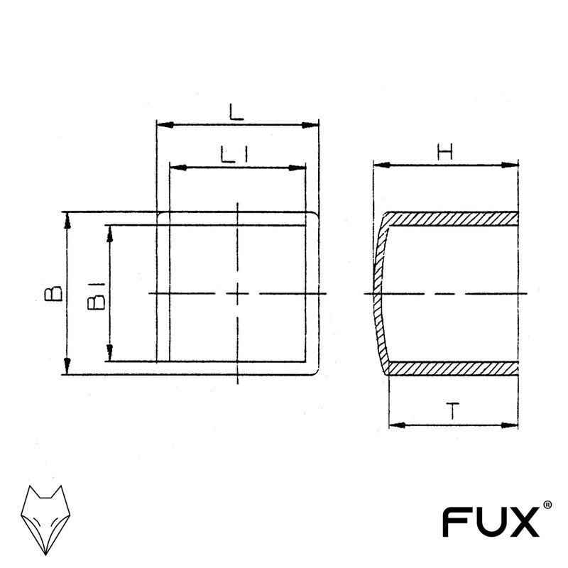 - Cap dimensions: dimensions (L x W): 43.5 x 43.5 mm; total height (H): 31.7 mm; mounting depth (T): 28.0 mm; inner dimensions (L1 x W1): 39.7 x 39.7 mm