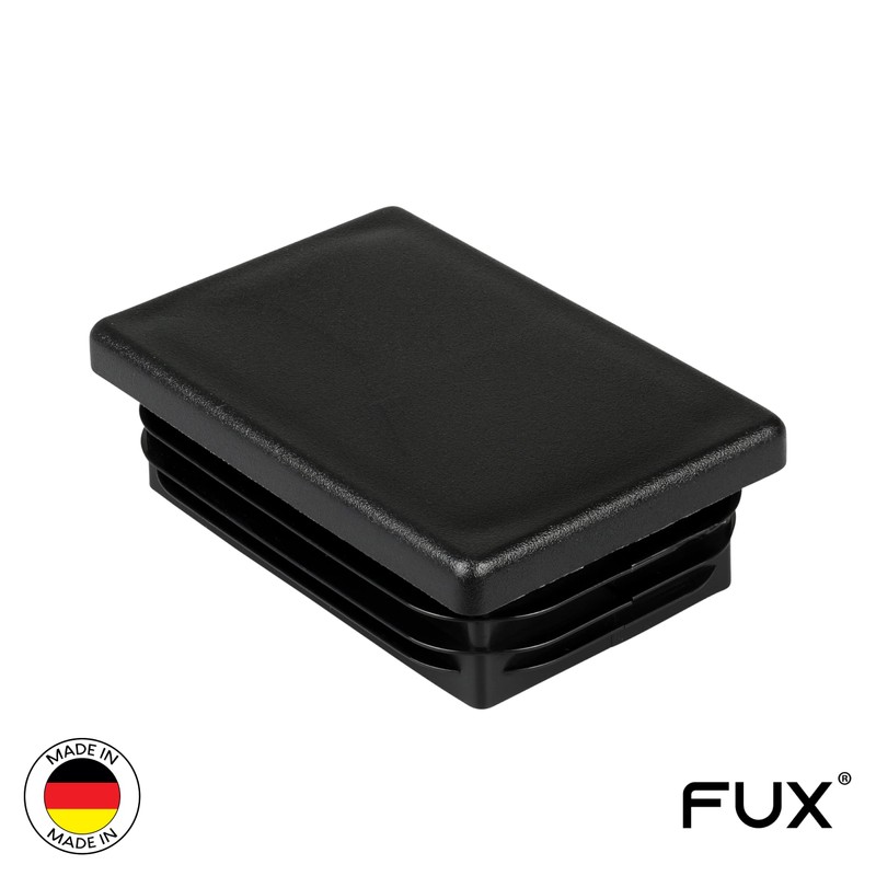 The TR lamellar plugs from FUX rosettes are manufactured with the utmost care and precision in Germany. The range of rectangular tube plugs includes a wide range of sizes from 20 x 10 mm to 100 x 40 mm pipe outer dimensions. The TR lamellar plugs are available in three neutral shades (black, white, grey), which can be used in many ways. As furniture gliders for chair or table legs, they allow furniture to be moved effortlessly and quietly while protecting various floor coverings from scratches and sanding marks. Our pipe plugs are suitable for any furniture whose feet are at a 90° angle to the floor and can be used indoors and outdoors thanks to the high-quality material. In addition, the lamellar plugs TR can be used as a termination for open pipes. There they reduce the risk of injury to sharp pipe ends and prevent the ingress of water, dust and other unwanted substances. In this way, the material is optimally protected against corrosion and extends the life of the pipes. The rectangular plugs TR are made exclusively of high-quality polyethylene (PE), which is light, weather and temperature resistant. This plastic is extremely robust and is equally suitable for outdoor and indoor use. In addition, the lamellar plugs have a reinforced head area, which makes them particularly resistant and durable. The lamellar plugs TR can be inserted or inserted into the respective rectangular tube with little effort and thus close the opening flush and secure. Our plugs have slightly flexible fins that ensure a firm hold of the plugs in the pipe and eliminate the need for additional adhesive.