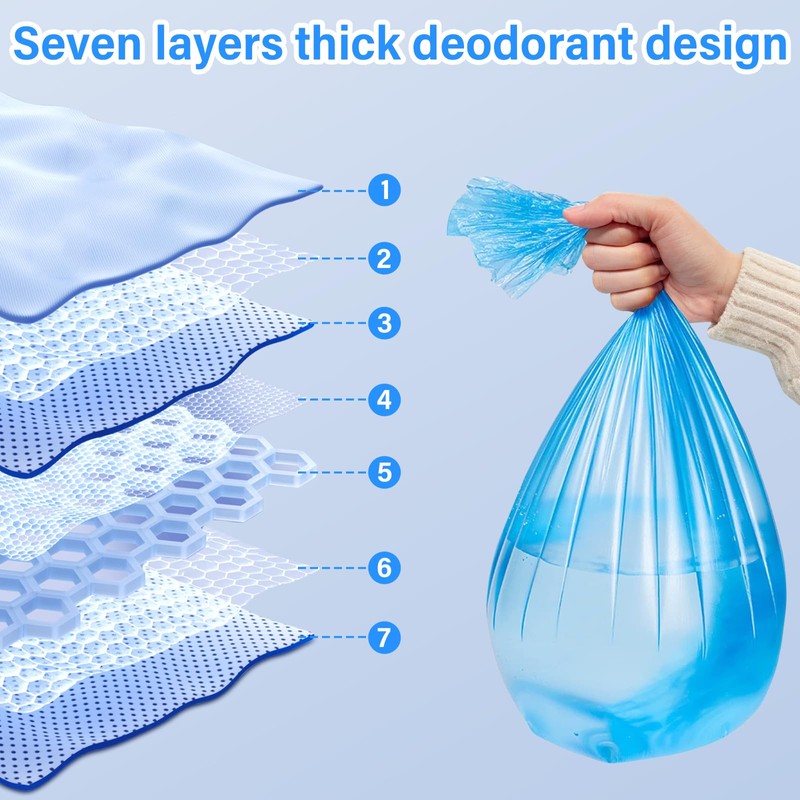 • BARRIERS ODOURS AND BACTERIA: The refill bags are made of new PE material. Made of new PE material, safe, odourless and recyclable, odourless and recyclable. The antibacterial film protects against 99% of bacteria and the 7-layer anti-odour treatment ensures that odours are effectively blocked. Provides an effective odour barrier.