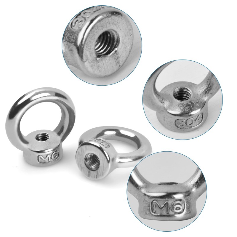 Pack of 10 Ring Nuts M6, 304 Stainless Steel Eye Bolt, Ring Eyelets, Screw Eyelets Hardware Accessories, Ring Nut with Thread for Lifting Accessories