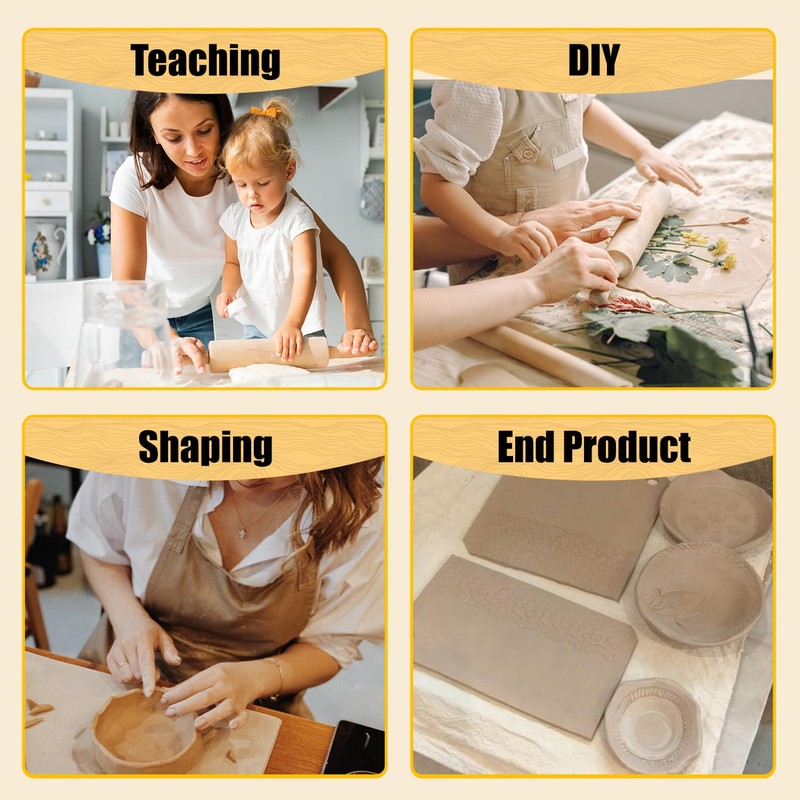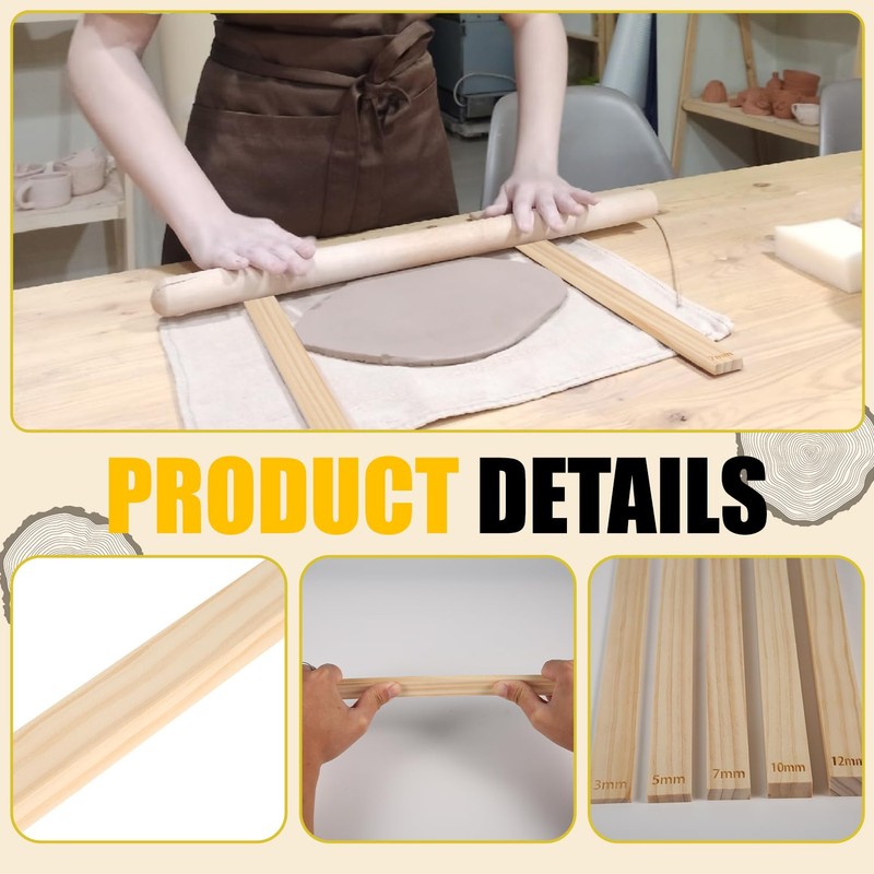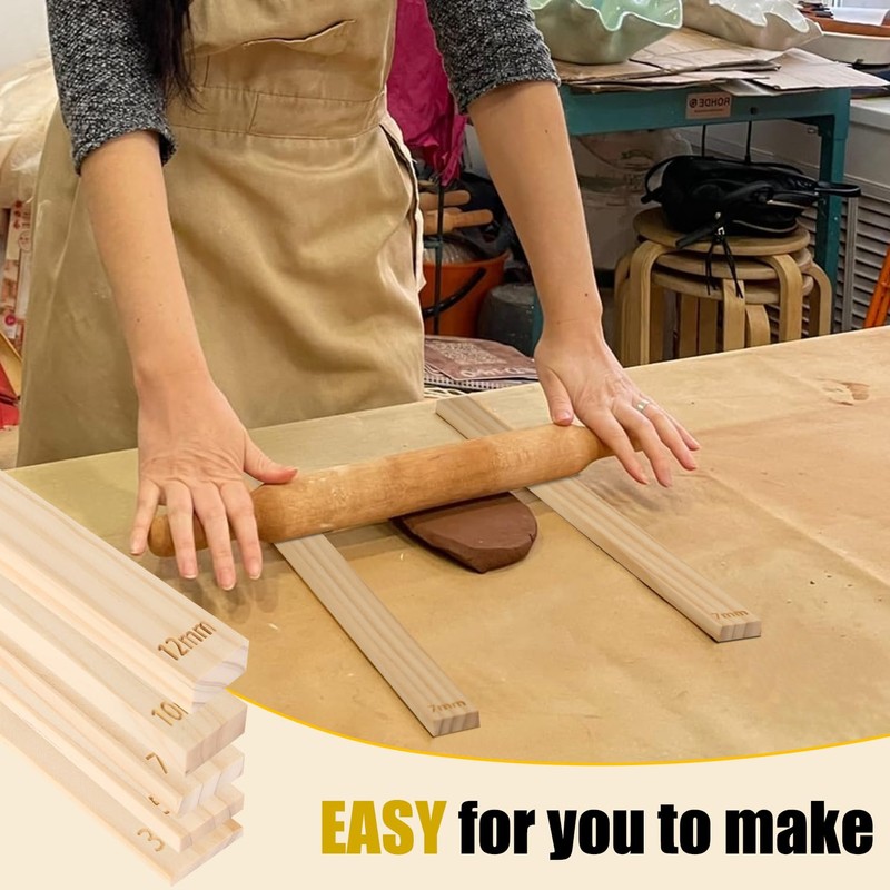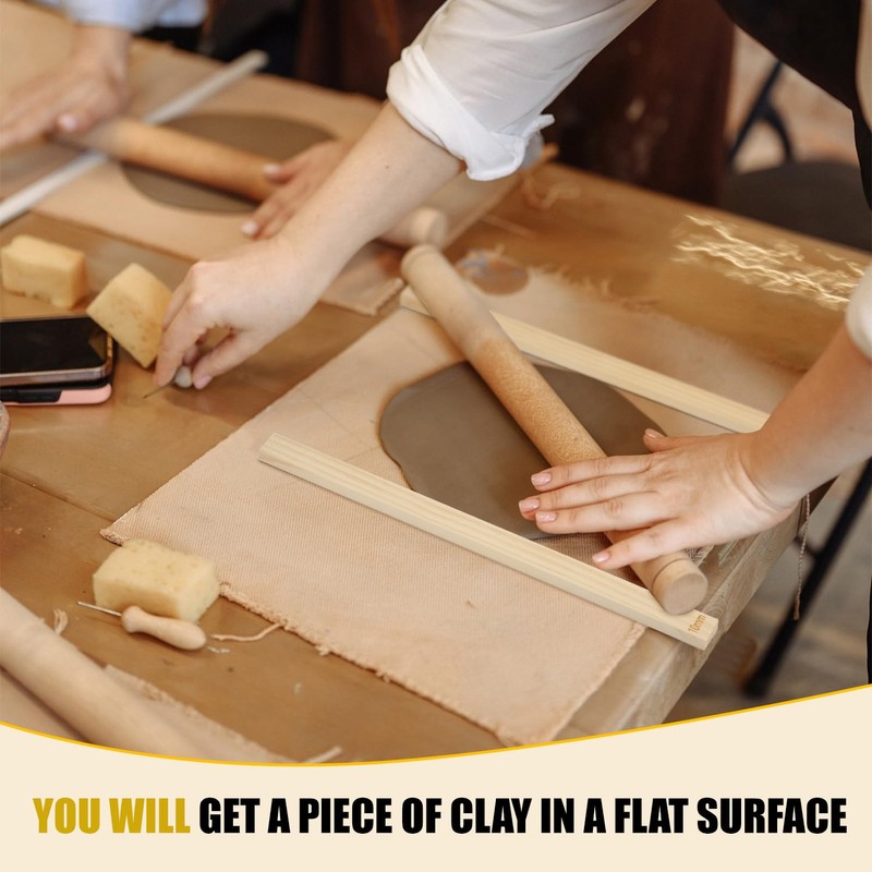 - Easy to Use You just need to place two wooden guides of the same size in parallel, repair the clay in the middle, and roll the clay with a rolling pen, and you can get a flat tone with the required thickness.