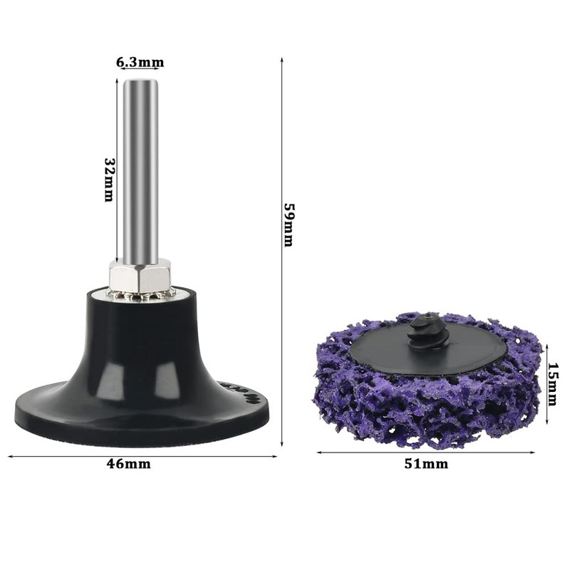 - Sizes and better work: diameter 2 inches 50 mm, thickness 15 mm, operation up to 22000 rpm. With the rubber sanding disc in the set can be attached to any 1/4 inch drill or straight grinder.