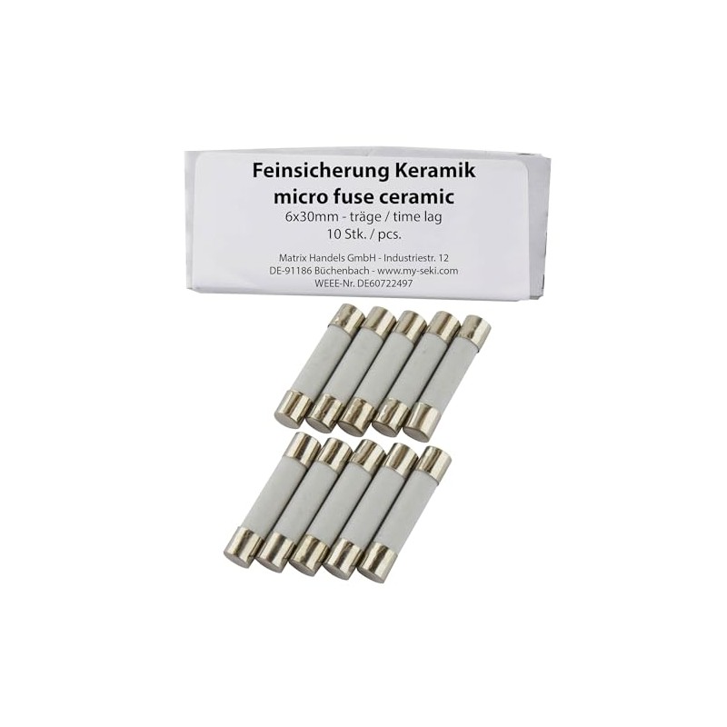 Pack of 10 SeKi Ceramic Fuse 5 A, 6 x 30 mm, Slow Blow, Glass Fuse, 250 V