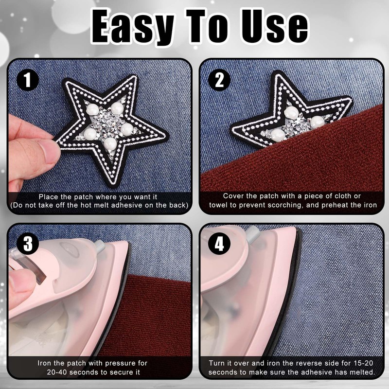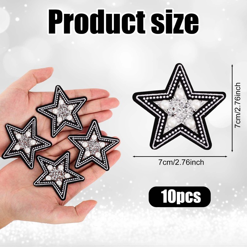 - Attractive and shiny patterns: our patches are in the shape of star and exquisitely embroidered, which makes it look eye-catching.Our star patches are decorated with rhinestones and pearl, and are shiny and attractive.