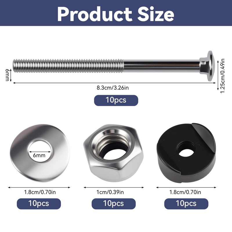 - Fixed thread: M6 trampoline screws threads are clear and deep, trampoline replacement parts screws ensures a solid connection, avoiding slipping or deformation.