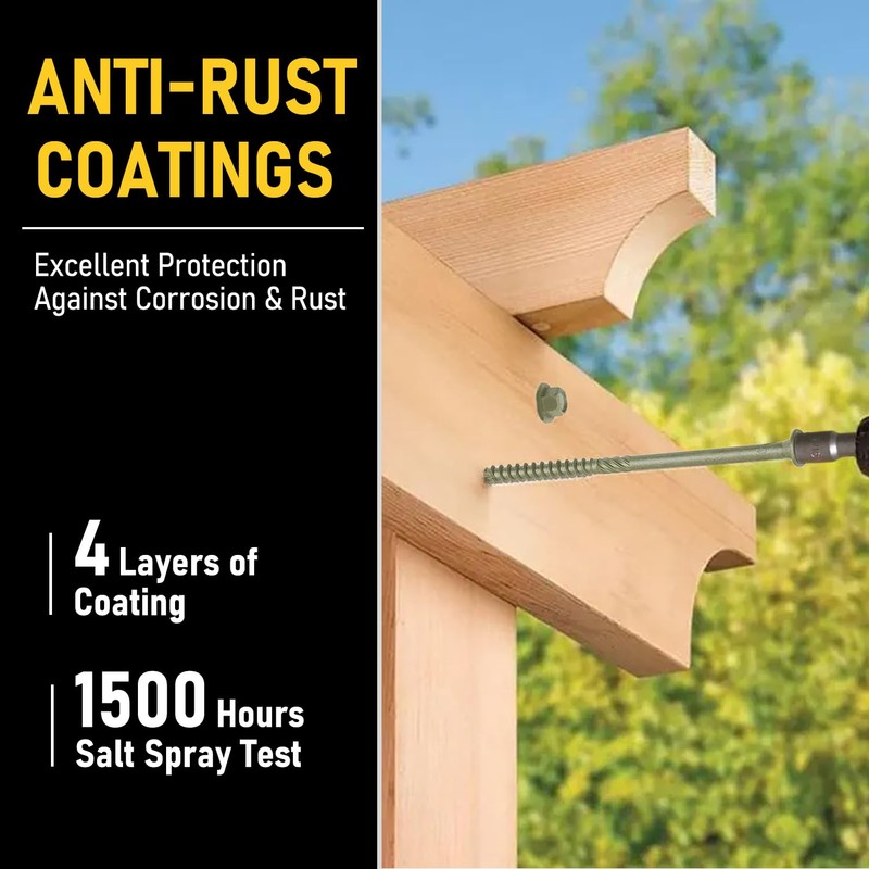 - 【Anti-Corrosion Coating】 - These black timber screws passed the 1000 Hour Salt Spray Test without coating failures. it remain smooth and fully functional even after prolonged exposure to the elements; They can endure and resist the rusting effect of sun and rain.