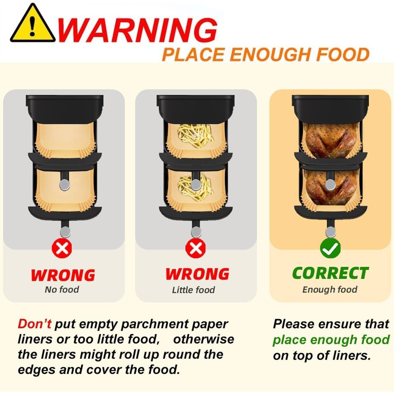 - The air should be cleaned: the paper inserts can absorb food splashes and grease well, leave the air fryer baking mould as clean as if it is unused. These disposable paper liners can be thrown directly into the trash after use, no need to clean, it can help you save time and effort.