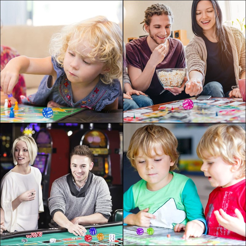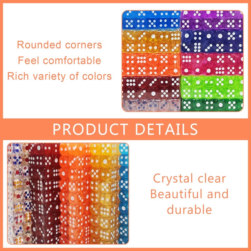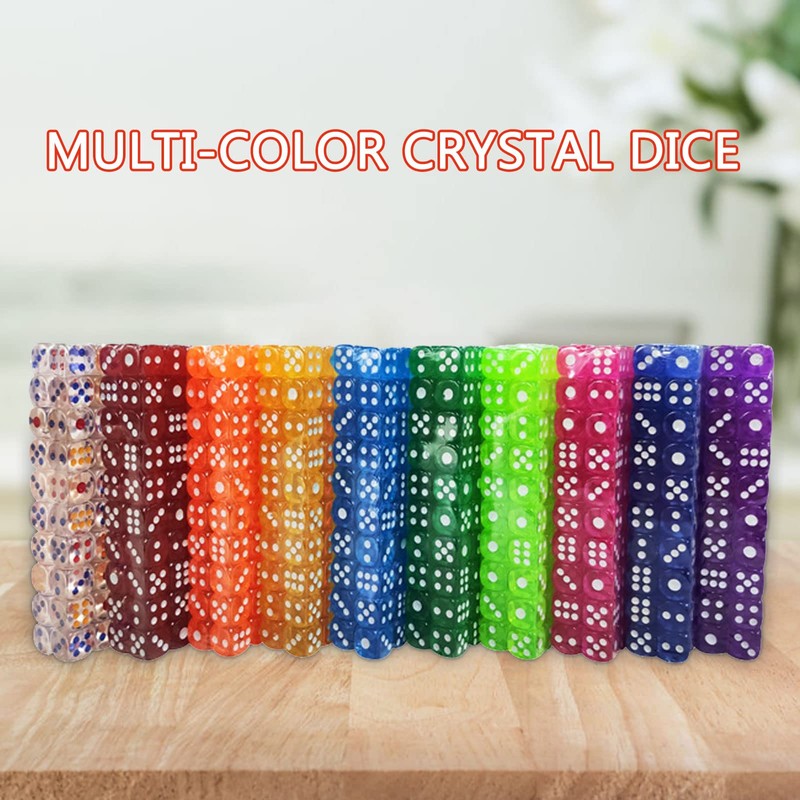 Pack of 100 Dice Games, Table Games, Transparent Dice Set, Six-Sided Dice, Colours Dice Set, Game Dice, 6 Sided Dice Set for Place Card Games, Game and Party (A)