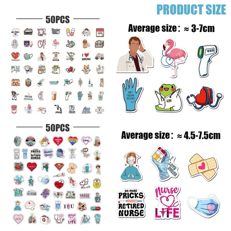 - Product contents: you will receive 100 stickers with the theme of doctor and nurse. The stickers are 3-7.5 cm in size and colourful and suitable for decorating motorcycles, skateboards, cars, bicycles, etc.