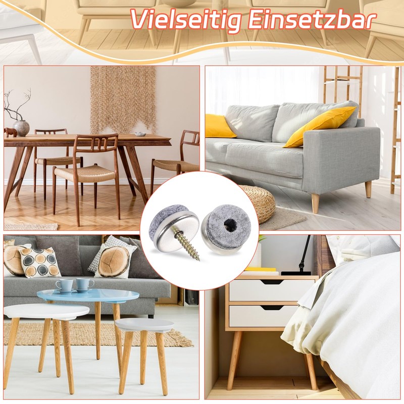 - Easy to install – simply screw the floor glider into the furniture leg with a screwdriver or electric screwdriver. Unlike self-adhesive pads, it stays in place for a long time without slipping or falling off.