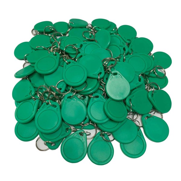 (pack of 100) HFeng 13.56MHz RFID Access Control Keyfobs Proximity MF 1k Keychains Smart IC Keycard for Door Home System nfc token tag (Green)