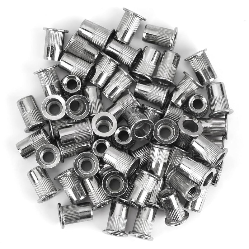 - Wide Application With 100 pieces of M6 stainless steel rivet nuts in this set, they are ideal for various applications in metal and plastic constructions. The knotted nut makes it easy to insert into the workpiece.