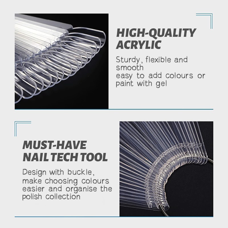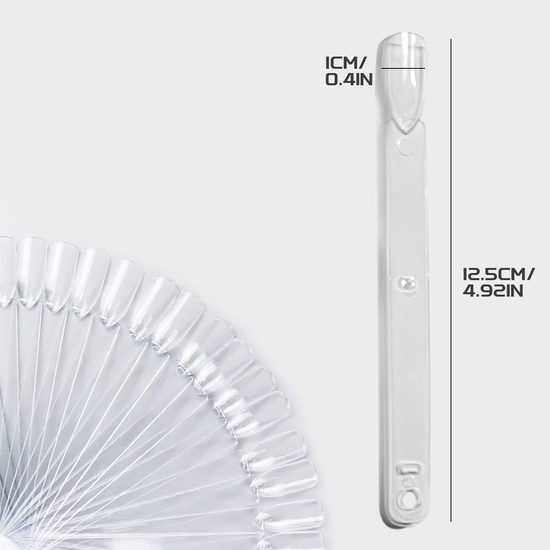 - Each package contains 50 pieces of transparent nail pens and a metal buckle. Each nail sample is approx. 12.5 cm / 4.92 inches long and 1 cm / 0.4 inches wide.