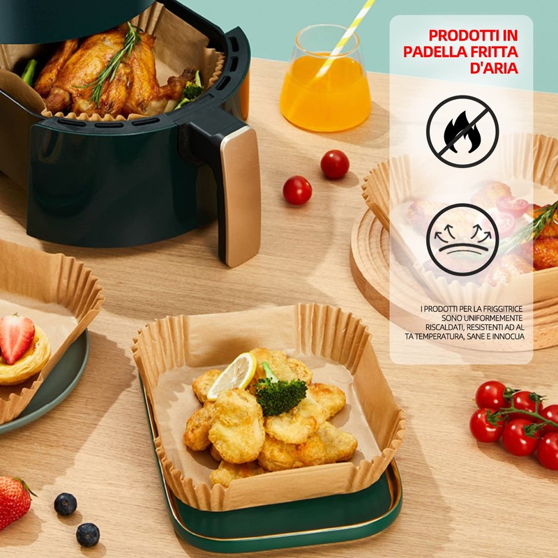 - Keep the air fryer clean: These disposable paper sleeves can effectively keep food residues, keep grease away from the fryer, so that it is clean as when not in use, save time and effort. If you don't have the job of cleaning your air fryer after cooking, then our disposable paper sleeves are highly recommended.