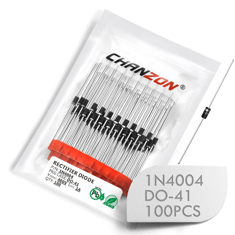 (Pack of 100 Pieces) Chanzon 1N4004 Rectifier Diode 1A 400V DO-41 (DO-204AL) Axial 4004 IN4004 1 Amp 400 Volt Electronic Silicon Diodes