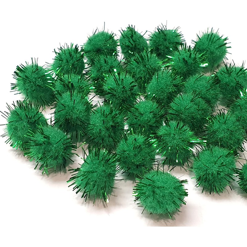 - Pompoms for DIY creative crafts. Size: 15 mm pompom + green glitter