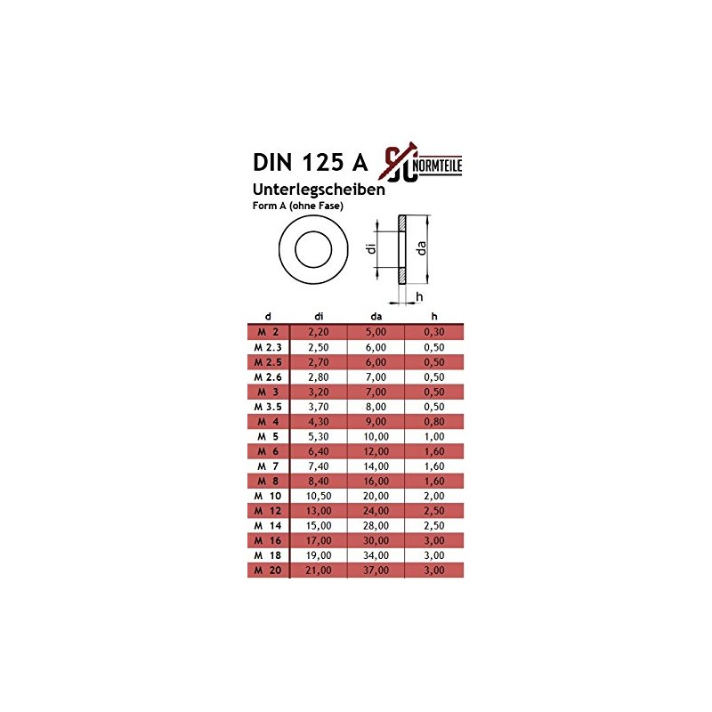 - ►Quantity: 100 pieces, size: M10 (10.5), washers form A according to DIN 125 (ISO 7089)