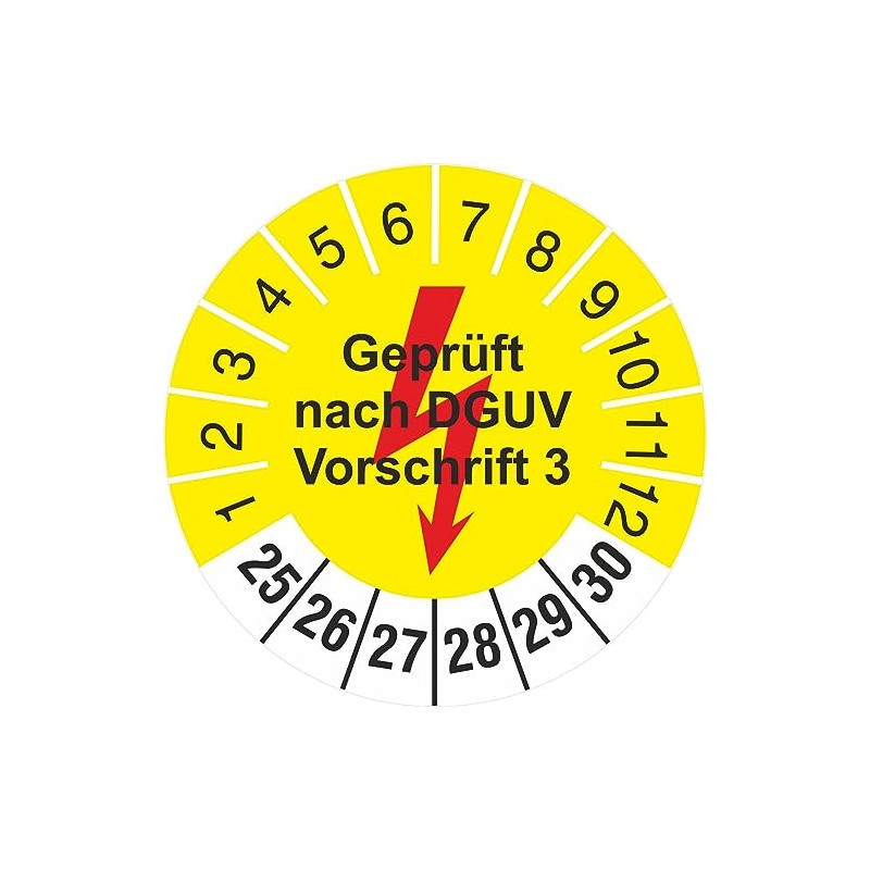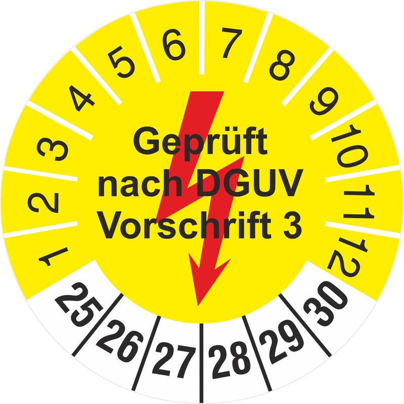 Test labels tested according to DGUV regulation 3. The test badges are permanent adhesive and have a good adhesion on dust-free smooth surfaces. Matching basic badges and pens for writing on can also be found in our shop.