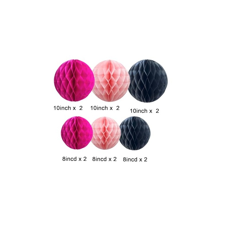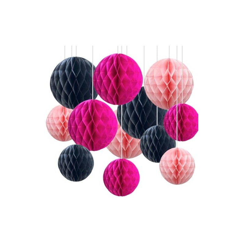 Pack of 12 Black and Pink Paper Honeycomb Balls, Hanging Tissue Paper Honeycomb Balls for Party Decoration (6 inches and 10 inches)