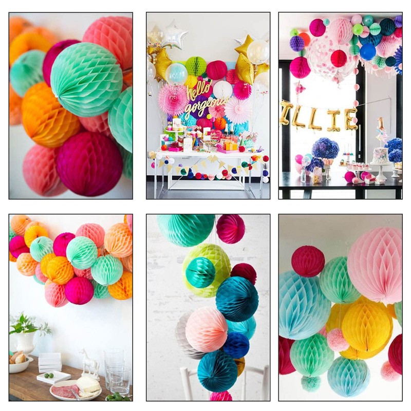 - Hang honeycomb balls multicolour on the ceiling, over a table, under a balcony or on a branch. Use them to create dreamy backgrounds for your events