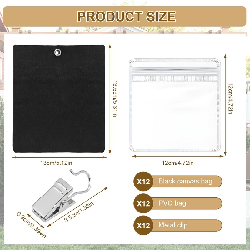 Pack of 12 Curtain Weights Outdoor Adjustable Tablecloth Weights for Outdoor Use with 12 Waterproof PVC Pockets and Metal Clips for Attaching Outdoor Curtain Weatherproof and Tablecloths