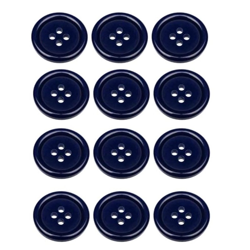 Pack of 12 Dark Blue Sew on 15mm Round Buttons Flat 4 Holes 24L (Dark Blue, 15mm-12Pcs)
