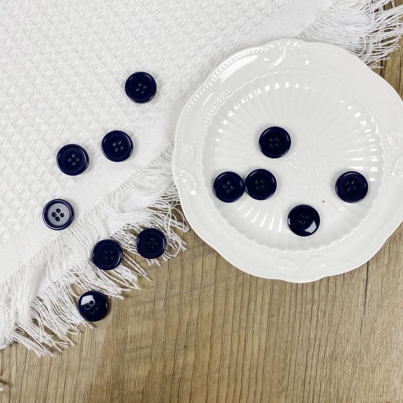 - A pack of 12 dark blue round 15mm buttons ready for you