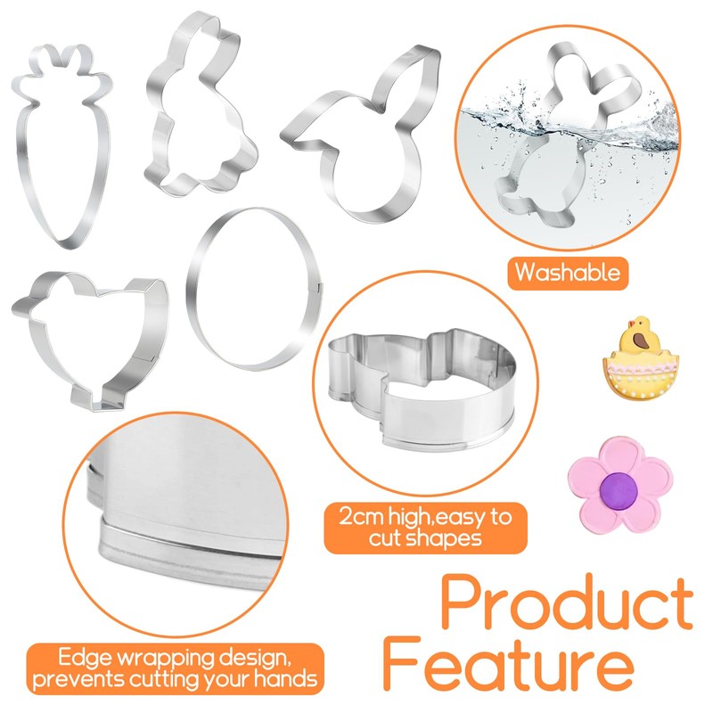 High-quality stainless steel: Easter cookie cutters are made of stainless steel, is corrosion resistant. Easter cookie cutter no sharp corners or edges, safe and comfortable to use, easy to use and wash.