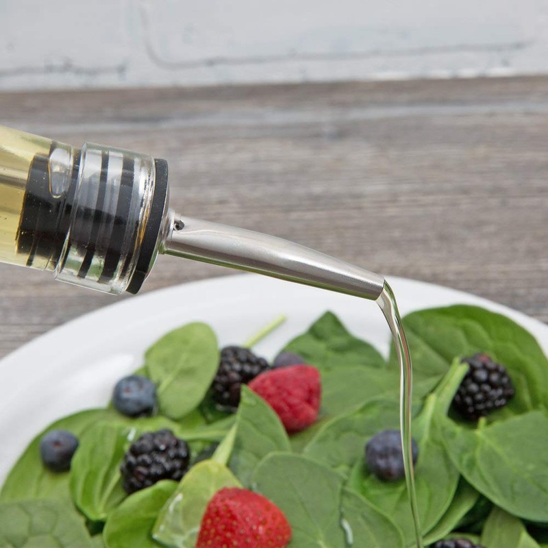 - Long pourers with tapered spout are by far the most popular pour spouts in home, kitchen, restaurants, bar, Try it out on bottles of olive oil, vinegar, coffee syrups, and other products you use frequently. Fits most liquor and wine bottles, great for use with oil bottles too.
