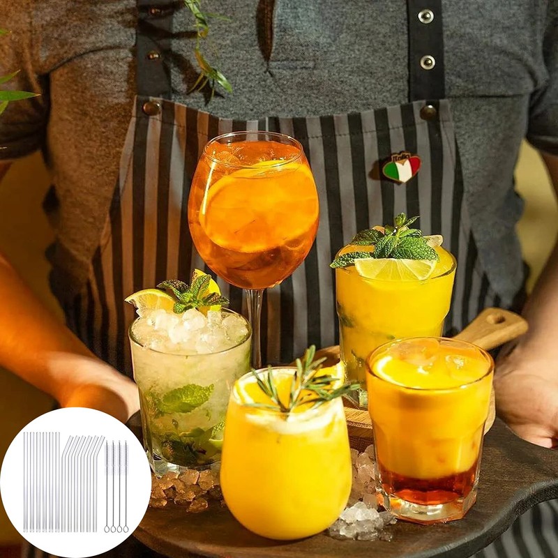 Glass straws do not float like plastic straws and are great for stirring when there are many ice cubes in the drink. Convenient for parties and suitable for drinks and glasses such as cocktail, juice, chunky banana milk, thick smoothies, tea, latte macchiato, etc.