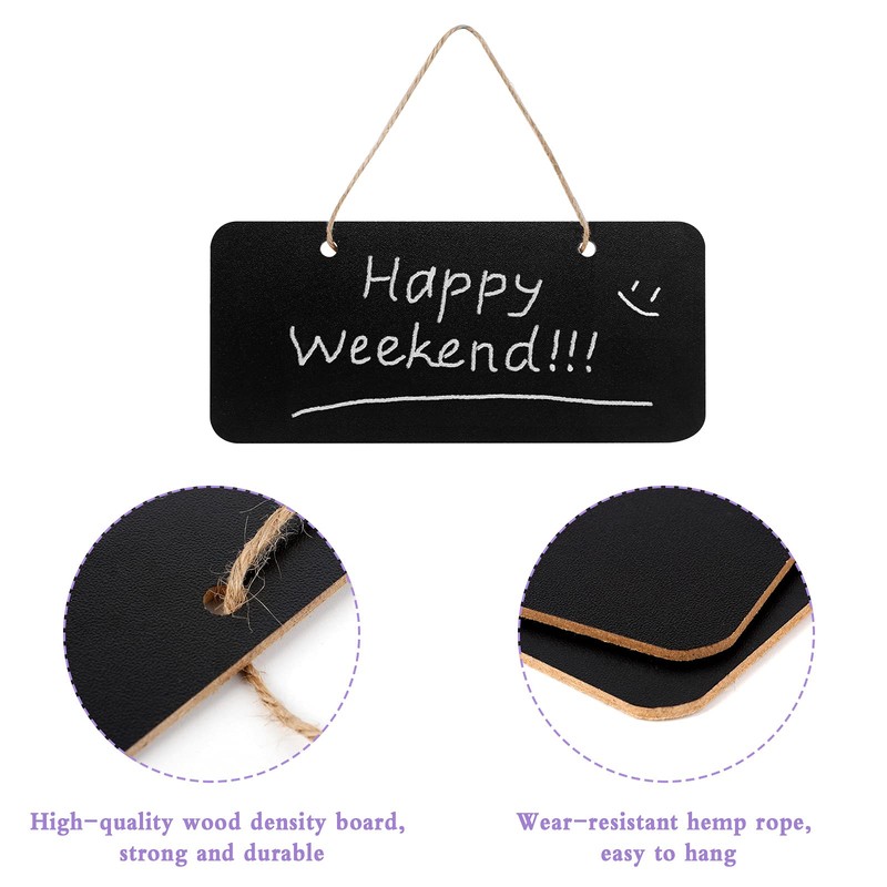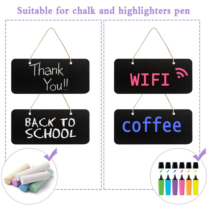 - Suitable Size The size of the chalkboard tags that can be written on is 18 x 8 cm. It can be hung where you need it. The right size can not only be used as a decoration, but is also very eye-catching as it can display the information you write on the board.