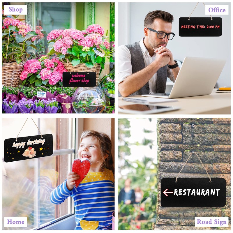 - Can be Hung The wooden message board can be hung so you can hang it in your own garden or use it in bakeries, cafes, restaurants, etc. It is very practical, whether it is used as a door decoration or as a menu.