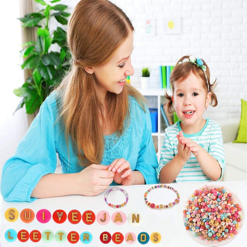 Pack of 1200 Colourful Letter Beads, Suiyeejan 7 mm A-Z Letter Beads Set, Coloured Alphabet Beads, Adults for Christmas, Holidays, Birthdays, Parties etc., Colourful
