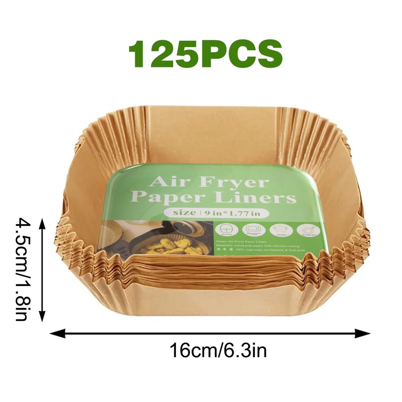 Pack of 125 16 cm Baking Paper for Hot Air Fryer, Airfryer Baking Paper, Airfryer Baking Paper, Square, Water and Oil Resistant, Suitable for Hot Air Fryers, Ovens and Steamers