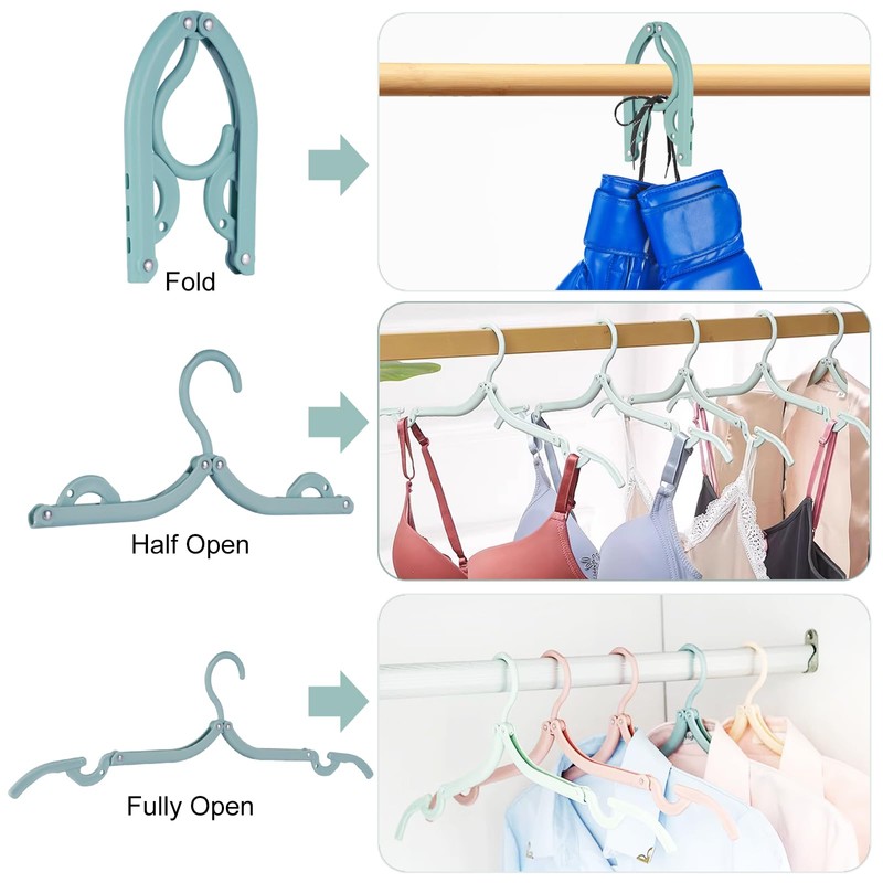 - Travel accessories: portable foldable clothes hangers can be folded to fit in the small pockets of travel bags and suitcases. Their slim and compact shape helps to save valuable space in your luggage or wardrobe, making them easy to store, carry and use, making travel more convenient.